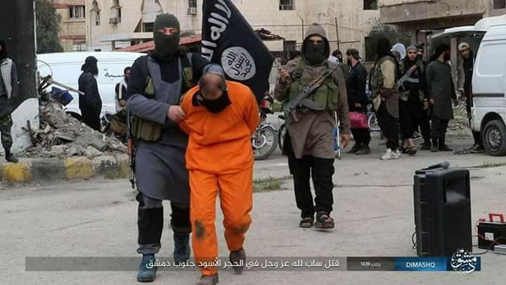 ISIS in south Damascus published photos of its execution of Palestinian refugee, “Emad Al-Oraby,”who is father to a three-year-old child, and resident of Street 15 in Yarmouk camp. According to ISIS, the execution came as a punishment for “self-deification of God.”