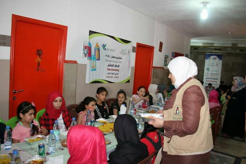 In Lebanon, the Charitable Association for Palestinian Relief, organized in cooperation with the European Relief Foundation, a collective Iftar for a number of Palestinian-Syrian children living in Wadi Al-Zayneh in south Lebanon, on Monday 4/6.