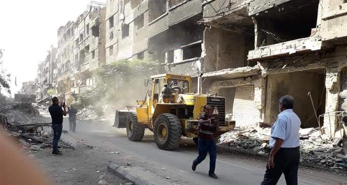 In live videos and snapshots from the camp, bulldozers and trucks appear to carry debris out of the camp. Efforts have also been underway to reconstruct the old Shuhadaa Cemetery.