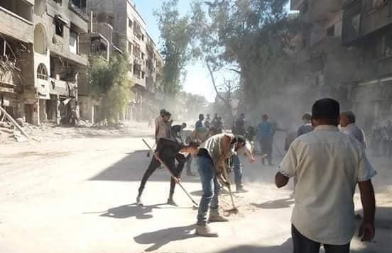Over 60 Yarmouk Camp residents have taken part in projects to remove debris from the area.
