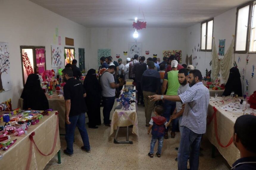An exhibition for handicrafts was held by the Sanabel AlMustakbel scouts, in partnership with the Commission of Palestinians of Syria for Relief and Development, in Ata village, in Idlib’s northern outskirts.