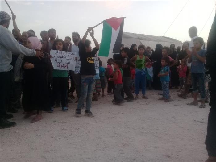 The displaced Palestinian families north of Syria continue to rally, protesting their tragic living conditions in the poorly-equipped Deir Ballout Camp.
