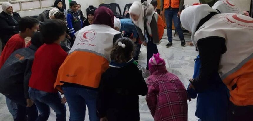 A set of leisure activities was held by the Psychological Support Team at the Palestinian Red Crescent, in partnership with the Danish Red Cross, in an attempt to entertain children and people with disabilities in Khan Dannun Camp for Palestinian refugees, in Rif Dimashq.