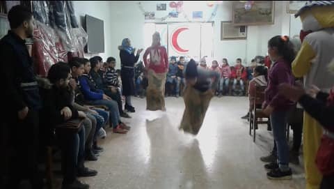 The Palestinian Scouts Association in partnership with the Palestinian Red Crescent Society staged activities for children in AlAyedeen Camp for Palestinian refugees in Hums.