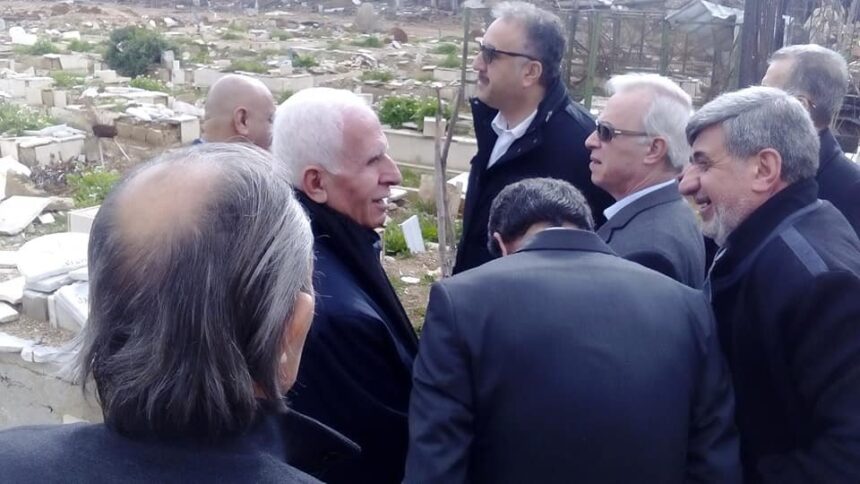 A delegation of the Palestine Liberation Organization (PLO) headed by Azzam AlAhmad and Information Minister Ahmad Assaf paid a visit to AlShuhadaa Cemetery in Yarmouk Camp.