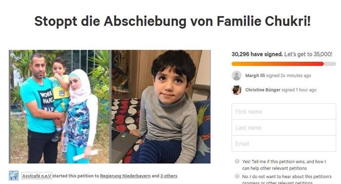 The campaigners are seeking to reach 30,500 signatures as a means to pressurize the Bavarian government to cancel the deportation.