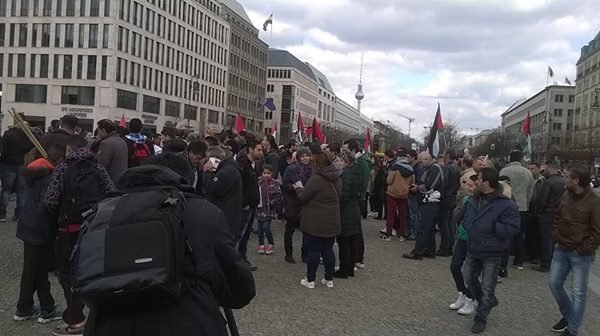 Solidarity vigils toke place in Jerusalem, the Gaza Strip, Nablus, Nahr Al Barid camp, the German capital of Berlin, and the Swedish city of Malmo to show solidarity with their besieged families in the Yarmouk refugee camp, and who are exposing to violent bombardment by air and ground attack from ISIS.