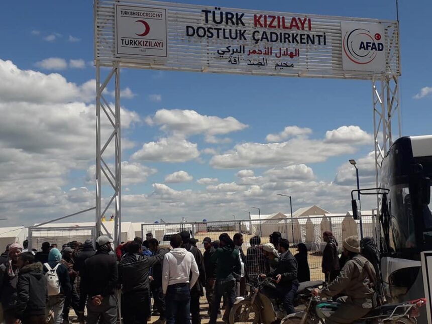 On April 22, 2019, the local council in I’zaz city, in Aleppo’s northern outskirts, transferred, in partnership with the Turkish charity AFAD, some 80 Syrian and Palestinian families, who were displaced from southern Damascus, from AlShabiba Camp to AlBal Camp, north of Suran city.