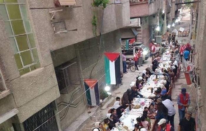 The banquet was held in Haifa Street in Yarmouk. Families taking shelter in the area along with PLO officials were in attendance.
