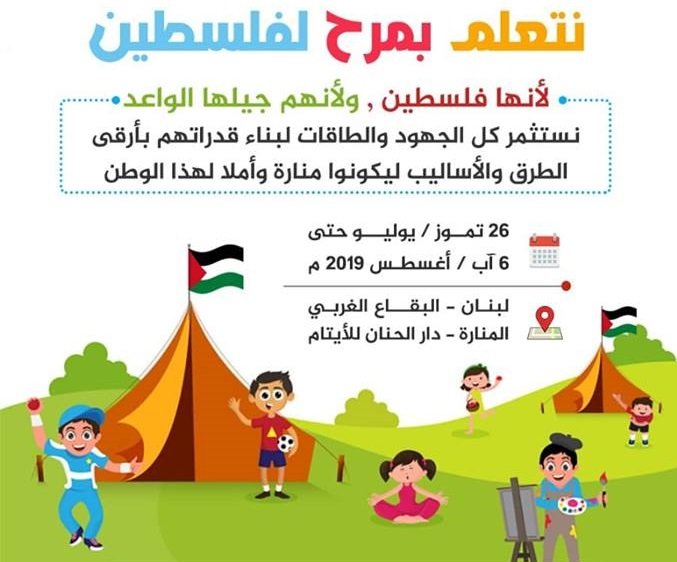 The International Association of Palestinian Teachers announced the launch of the fourth edition of “We Learn Happily for Palestine”summer camp, held in cooperation with the Lebanese ex-education Minister, Abdul Raheem Murad, and the International Association of Palestinian Institutions.