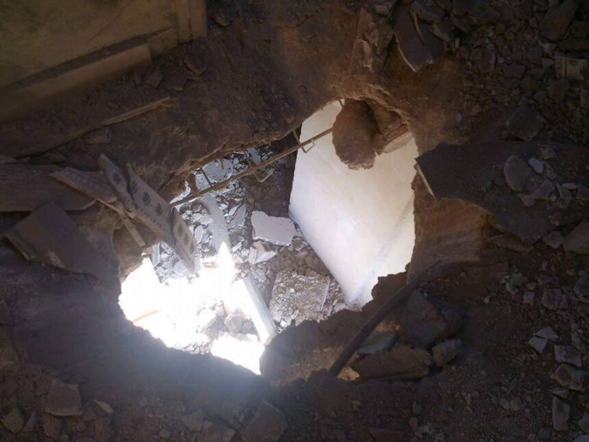 A missile hit the home of Palestinian refugee Raed Saber in Nile Street, in Aleppo, north of Syria, resulting in material damage.