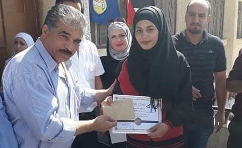 Palestinian refugee Alaa Nizar Fdheil, who snatched the gold medal at the West Asia Junior Table Tennis Tournament, held at Princess Soumaya Bint AlHasan Hall in AlHusain city between March 15 and 17, and her brother Nizar were honored by Khan Dannoun School, in Rif Dimashq,