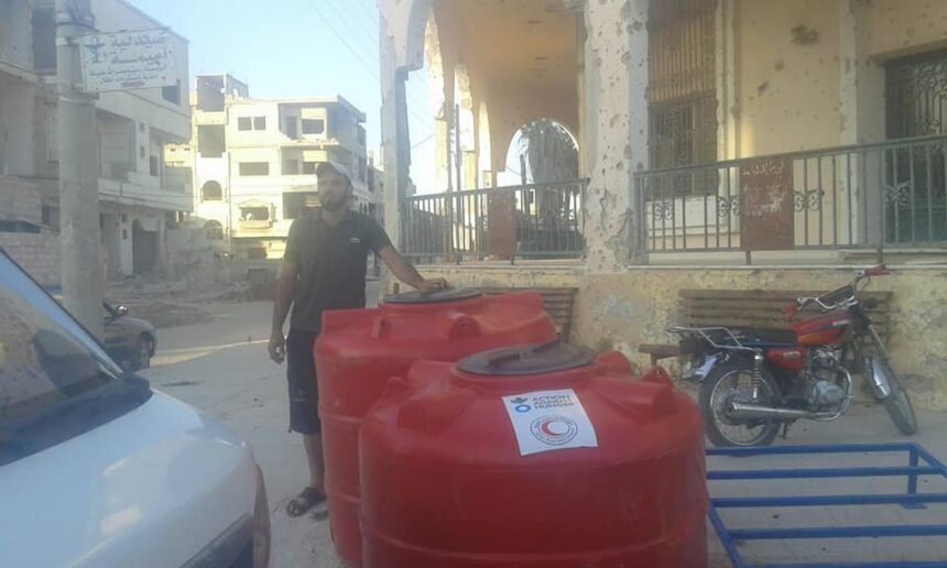 The Syrian Red Crescent Society handed over plastic water tanks to the poorest families in Daraa Camp for Palestinian refugees, south of Syria.
