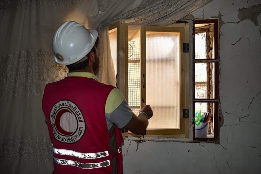 The Syrian Red Crescent Society handed over wood planks to some 40 families who returned to Handarat Camp for Palestinian refugees, in Aleppo.