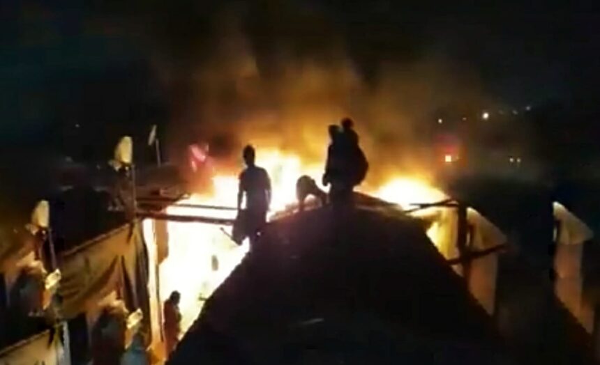 The blaze burned through two containers used as living quarters by people in the Moria camp, as well as some tents, a spokesman said.