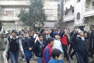 Demonstrations at the Yarmouk Camp for Support of Prophet Mohammed Peace be Upon him.
